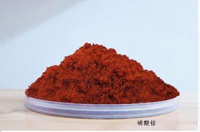 物化性質(zhì):硝酸鈷,分子式為Co(NO3)2.6H2O ,為紅色棱形結晶,易潮解,溶于水、酸 。主要用作顏料、催化劑及用于陶瓷工業(yè)。吸入后引起氣短、咳嗽等??诜鸶雇?、嘔吐。無(wú)機氧化劑,在火場(chǎng)中能助長(cháng)任何燃燒物的火勢。